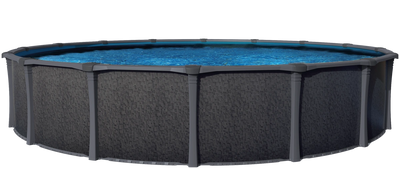 All of our above ground pools are made by Carvin and come in many sizes and designs. They are available to buy as just the pool itself, or we are happy to offer our "upgrade package" which also includes a high-quality sand filter, pump, and other basic operation equipment, as well as a ladder, winter cover, and basic maintenance equipment (pole, net, vacuum, etc.). It even comes with an automatic vacuum! Circular sizes range from 15 ft to 33 ft so you are able to choose the best fit for your backyard, and there are a few oval options as well!